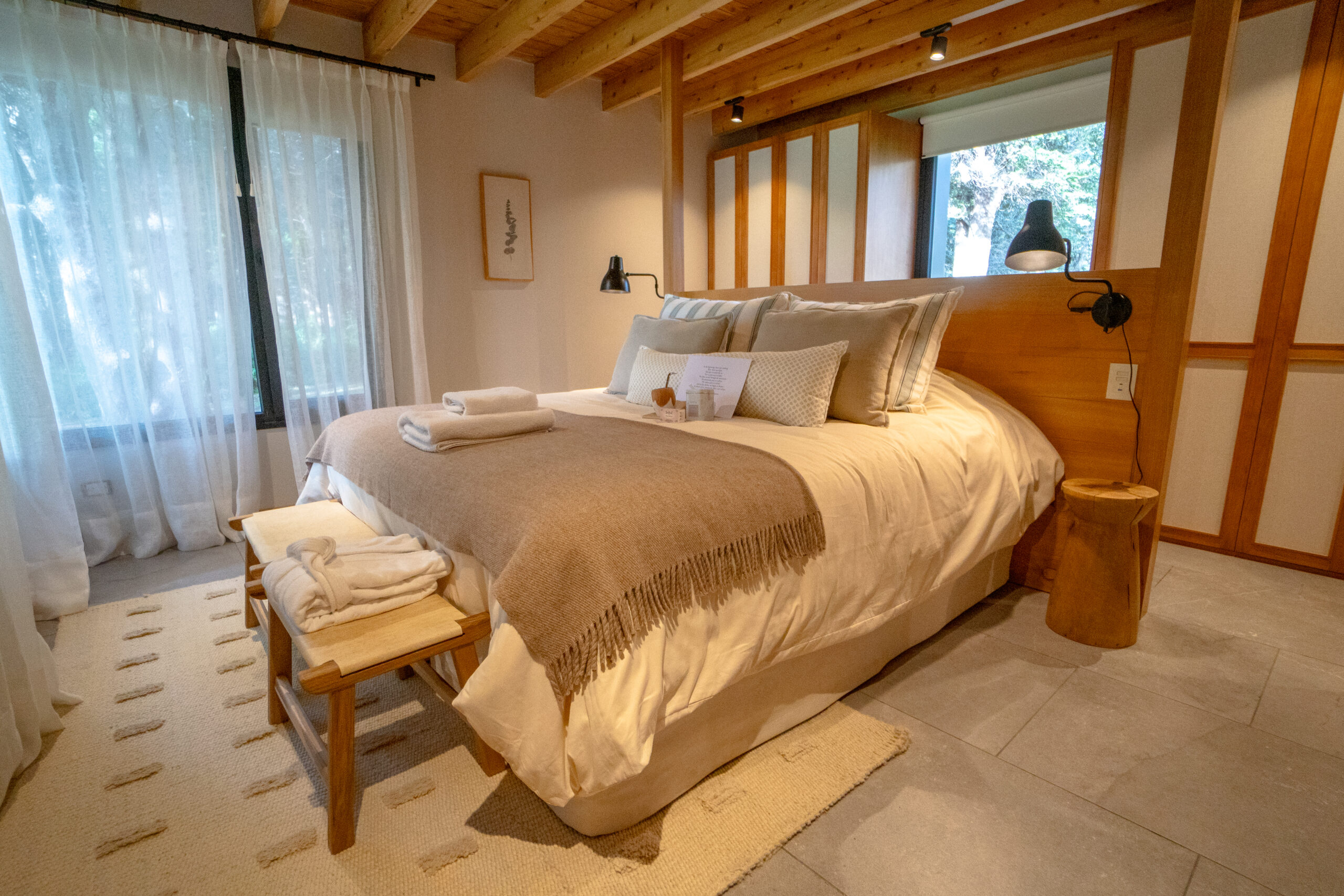 Accommodating up to six adults (+ an additional room), it spans two floors and blends Nordic-Patagonian architecture with spacious interiors and large picture windows, designed to maximize connection with nature.